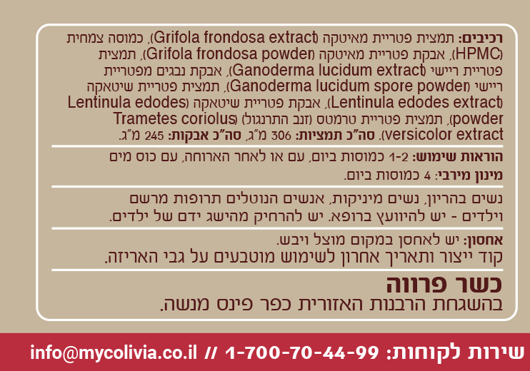 המוצר הינו תוסף תזונה ולא תרופה, ולא נועד לאבחן, לרפא או לטפל ואינו מחליף התייעצות עם רופא.